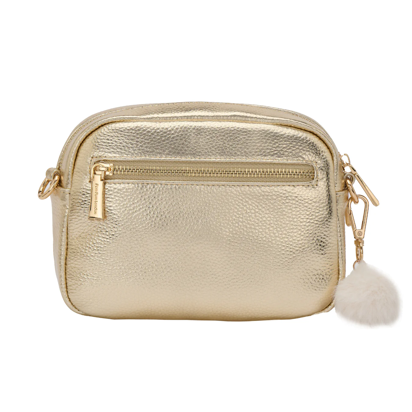 - Pom Pom London Original Bag in Metallic Gold - A statement crossbody that shines from day to night.