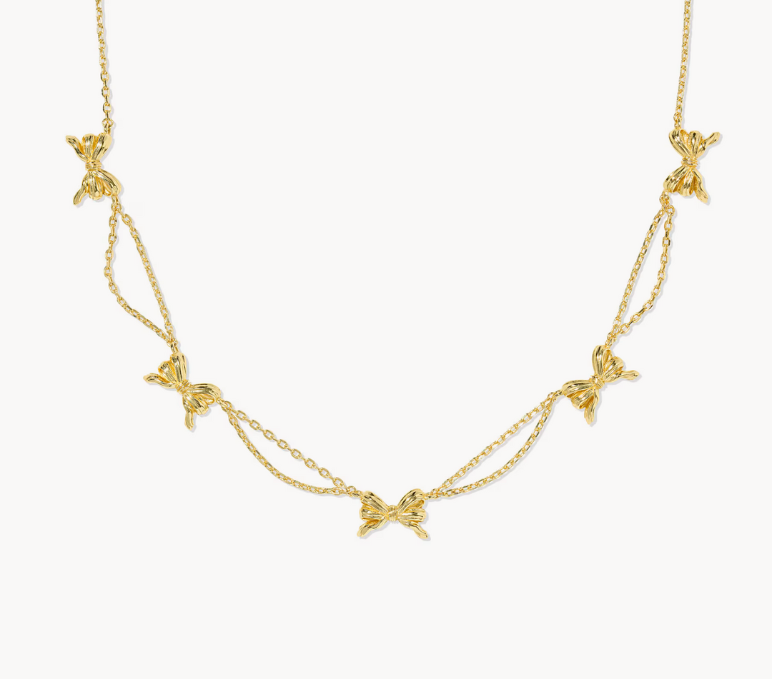 Breast Cancer Awareness Lillia Butterfly Enamel Strand Necklace Gold