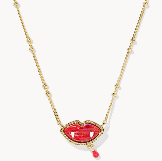 Vampire Short Pendant Gold Red Lab Grown Opal