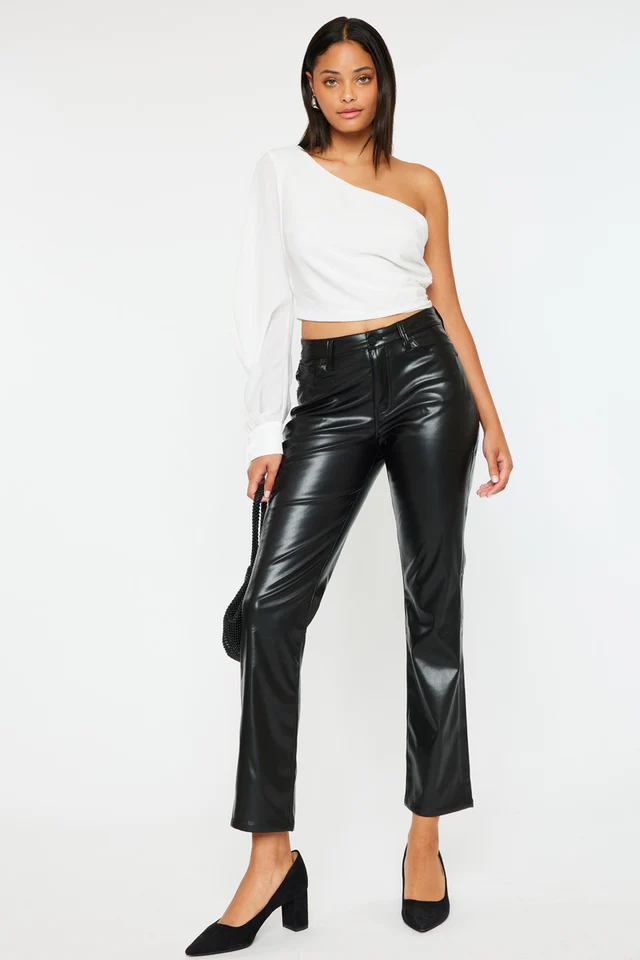 Rudi High Rise Faux Leather Slim Straight Leg Jeans