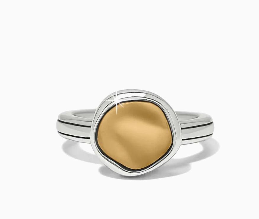 The inspiration here as the name implies was water as it flows down a small waterfall and lands on the bottom creating water ripples. Sculptural yet symmetrical, this ring makes the perfect versatile accent to any woman’s style.