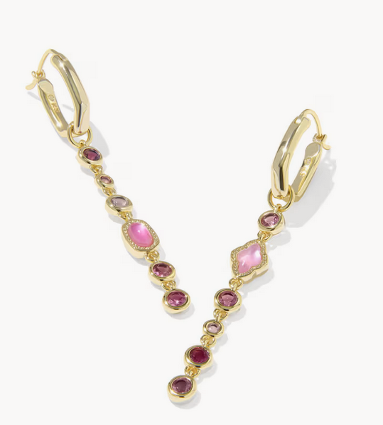 Mini Elisa Abbie Huggie Earrings Gold Pink Mix