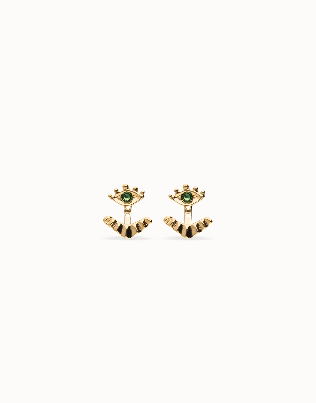 Ser Intuitiva Eye Earrings w/Green Stone and Adjustable Drop