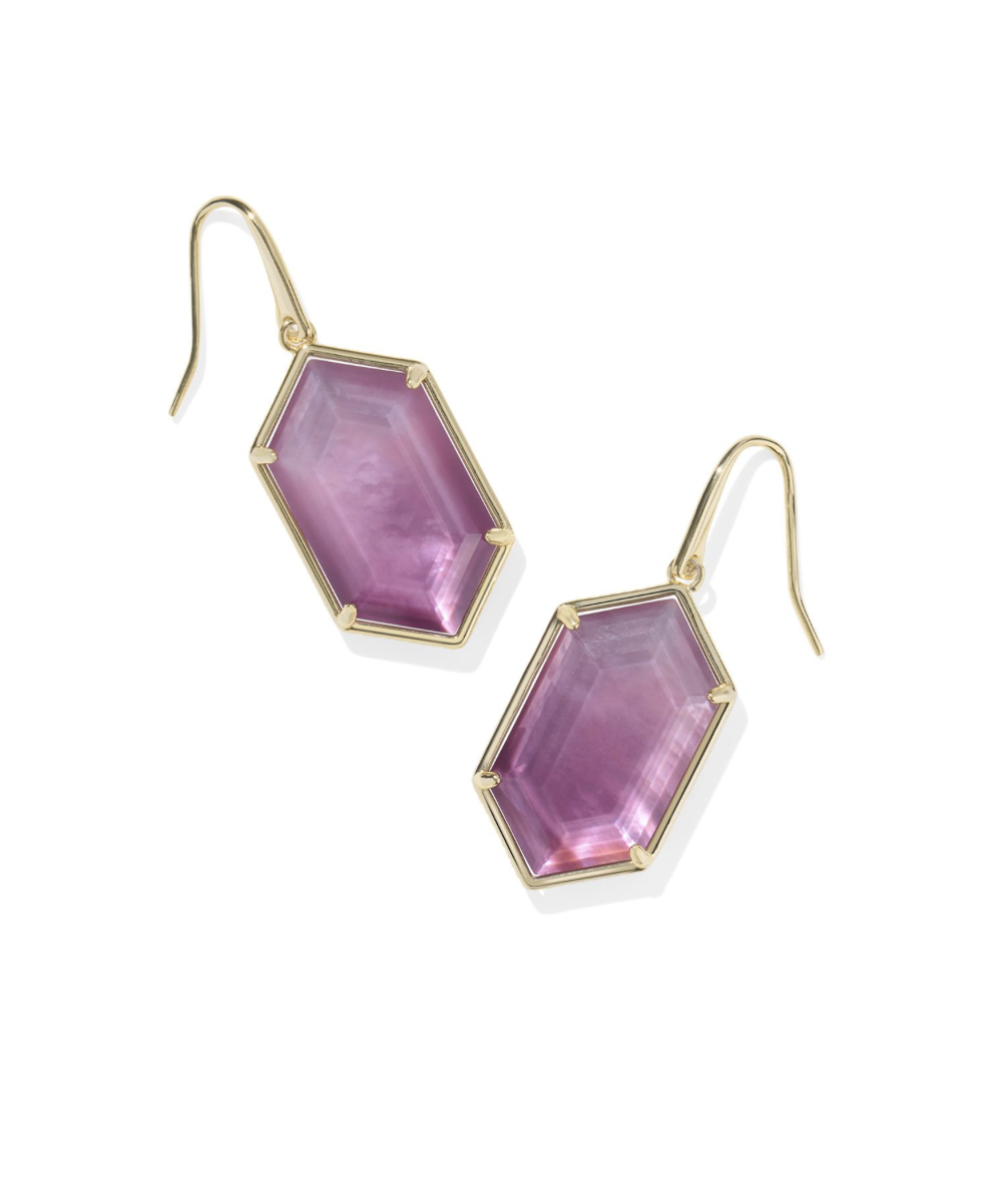 Dani Figaro Frame Drop Earring Pink Iridescent MOP Gold