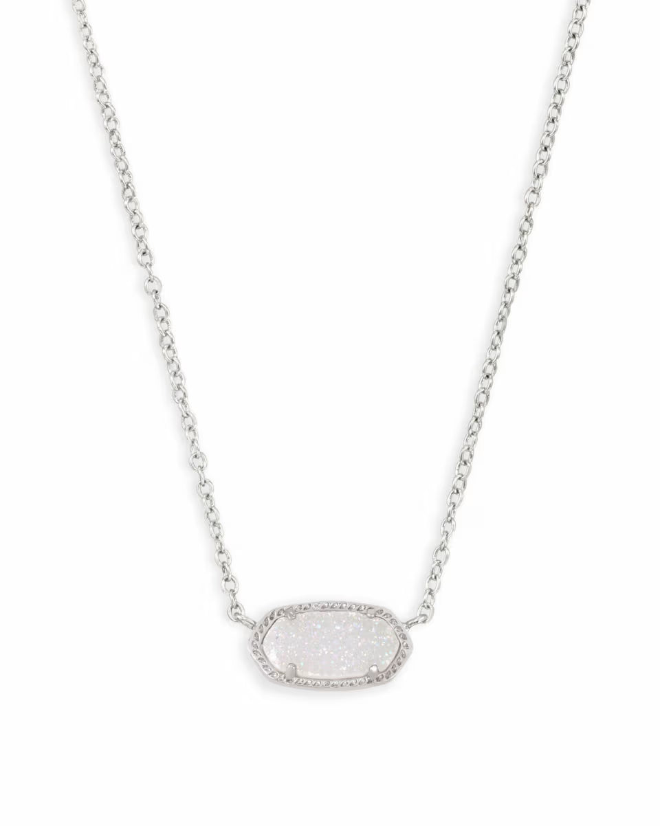 Mini Elisa Satellite Short Pendant Necklace Silver Iridescent Drusy