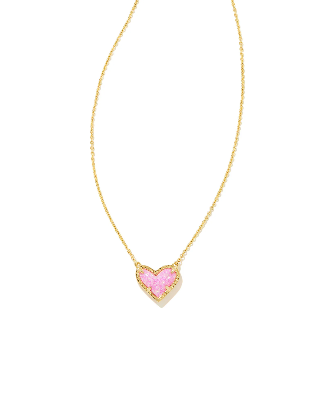 Ari Heart Short Pendant Necklace Gold Bubblegum Pink Opal
