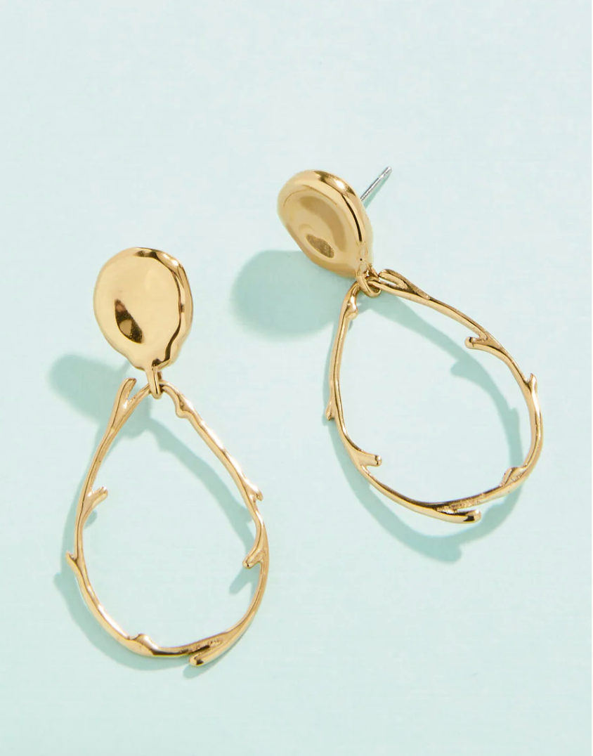 Make a splash with these lightweight Sea Coral Earrings. Uniquely curved like natural coral branches. Designed to shine through everyday wear, exercise, showers and a summer at the beach in tarnish free 14kt gold vacuum plating.