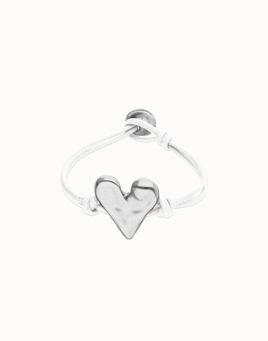 Palpito Beat White Leather with Silver Heart Bracelet Medium