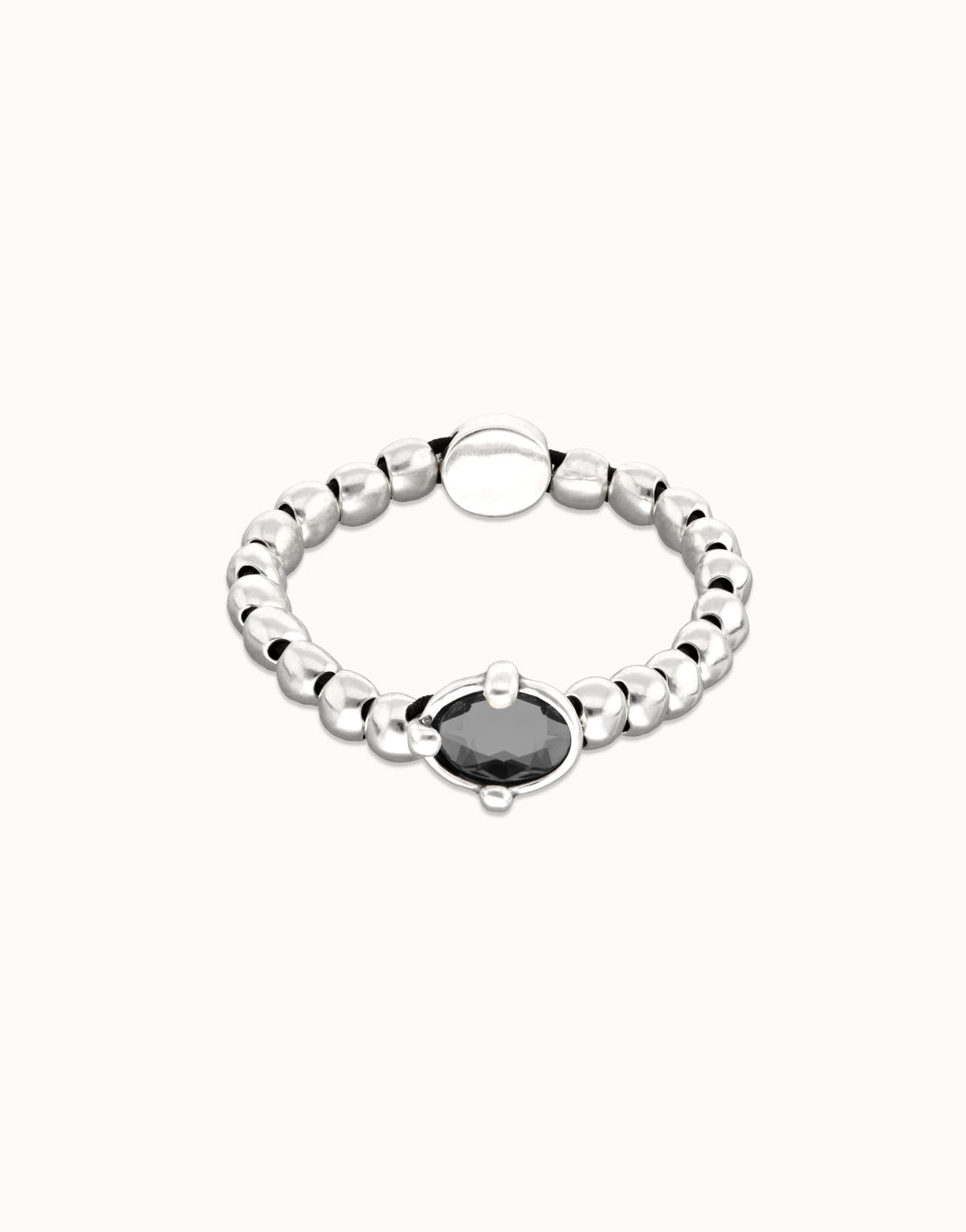 Ser Deslumbrante Beaded Oval Faceted Black Crystal Bracelet Silver